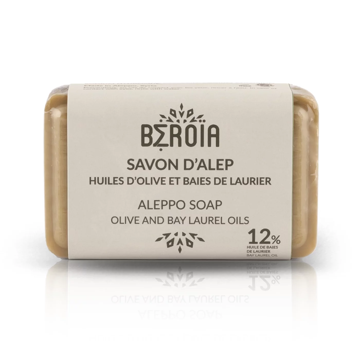 Натуральне Алеппське мило з олією лаврових ягід (12%), що має регенеруючі і заспокійливі властивості. Це мило підходить для нормальної та комбінованої шкіри в щоденному використанні на обличчі та тілі.