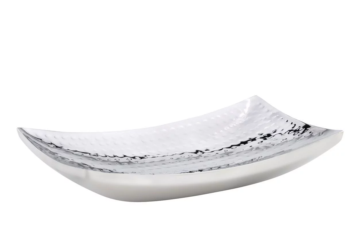 Сучасне квадратне блюдо з нержавіючої сталі з ефектною молотковою фактурою стане ідеальною основою для подачі фруктів, канапе, десертів або створення декоративних композицій. Блискуча поверхня та виразний дизайн роблять його універсальним елементом столового декору.