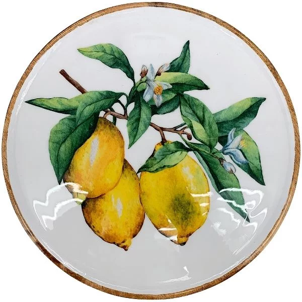 Декоративна дерев’яна піднос-тарілка з колекції Les Fleurs — це стильний акцент для вашої кухні чи сервірування столу. Круглий піднос діаметром 30 см виготовлений із натурального дерева та прикрашений яскравим зображенням соковитих лимонів на гілці, що додає виробу середземноморського шарму.