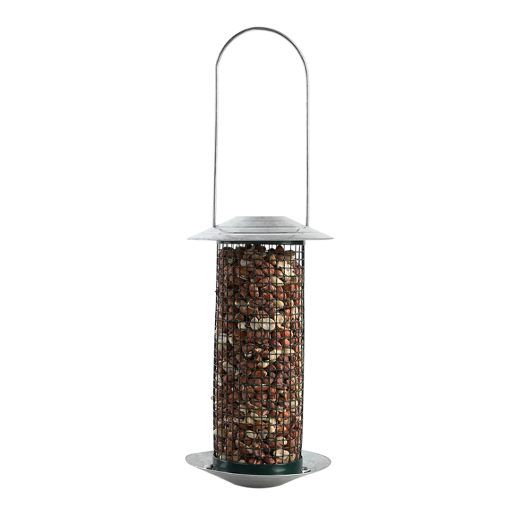 Чудова годівничка для птахів у стилі Лофт. Заповніть горіхами або арахісом. Завдяки відкритій конструкції птахи можуть легко наблизитись, щоб насолодитися їжею. Водозбірна чаша на дні гарантує, що горіхи та шкаралупа не впадуть на землю. Чаша має дренажні отвори. Силос легко заповнити, просто посуньте кришку вгору.