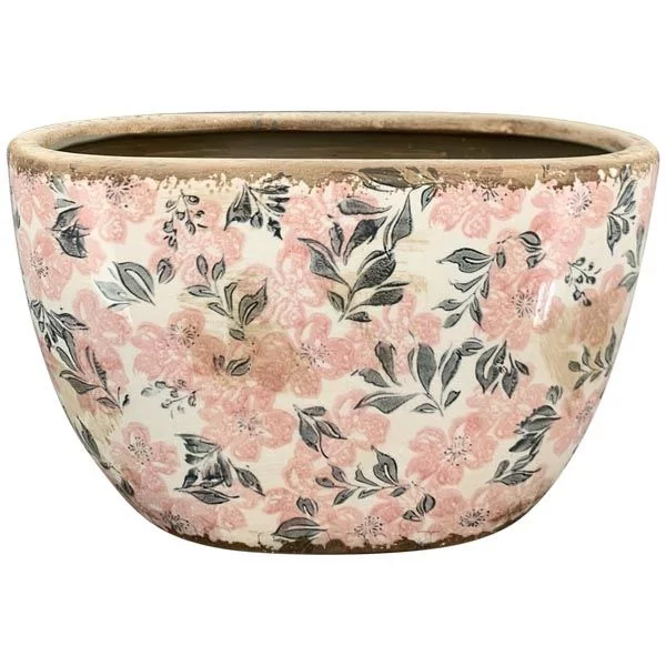 Стильне керамічне кашпо — чудове рішення для прикрашання інтер’єру або саду. Має витончений рожевий принт із квітковим орнаментом, який додає ніжності та візуальної легкості. Ідеально підходить як для справжніх рослин, так і для декоративних композицій. Може використовуватись як у приміщенні, так і на терасі чи балконі.