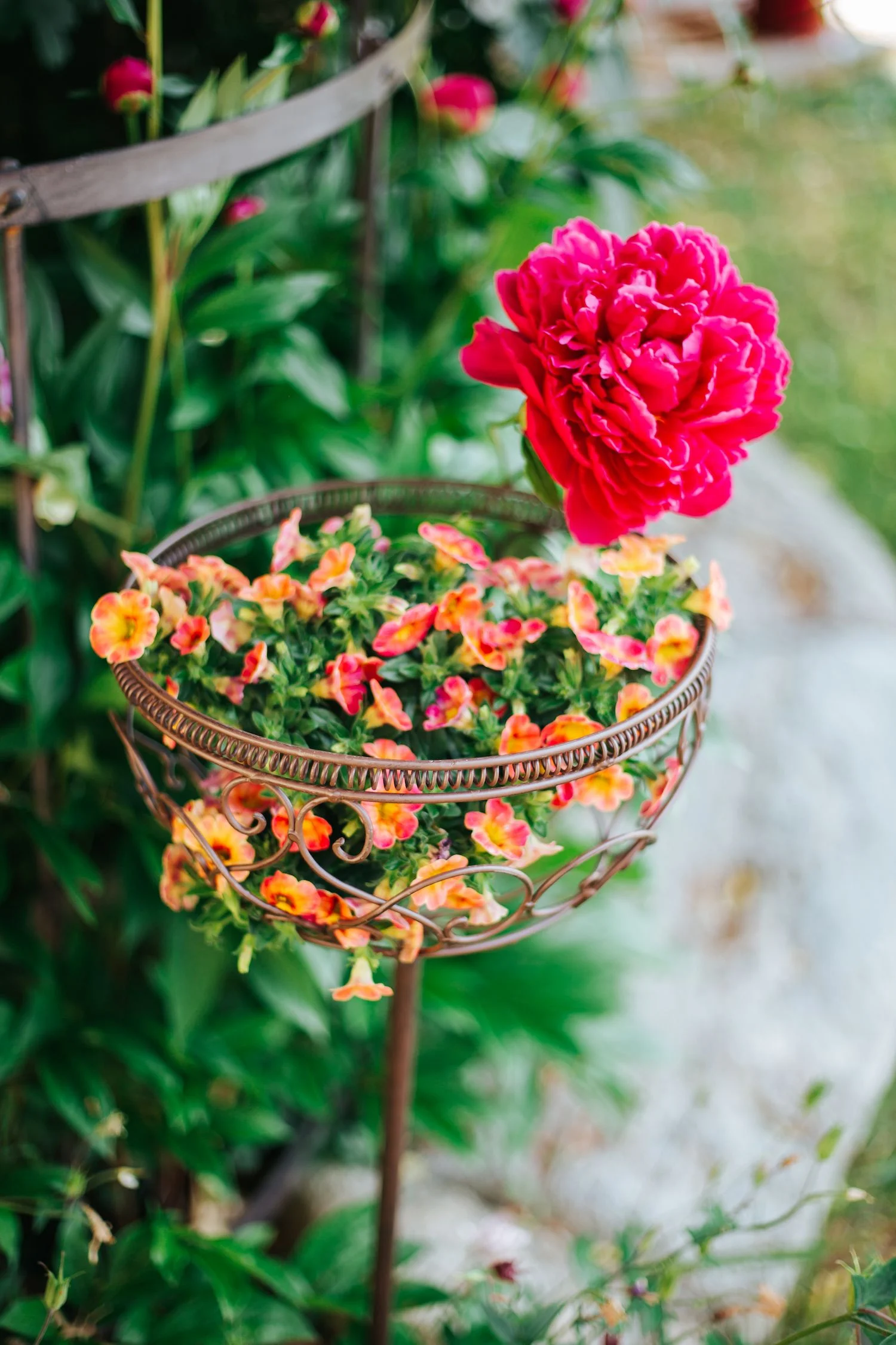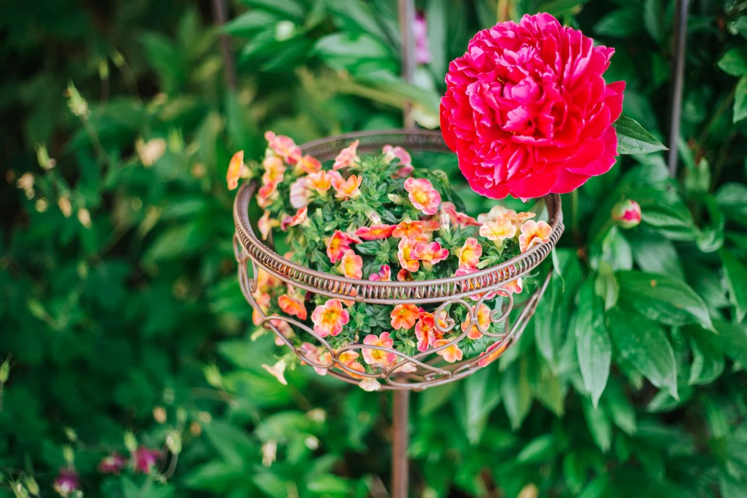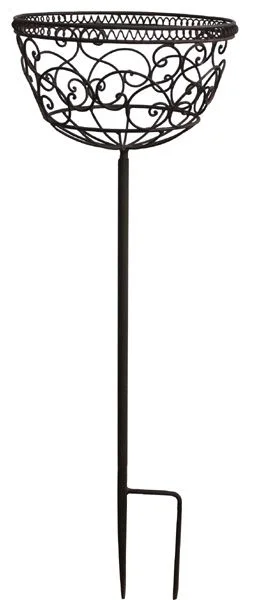 Завдяки зручному стрижню кашпо легко встановлюється в ґрунт, дозволяючи підняти рослини на рівень очей і створити виразні акценти в просторі. Міцна металева конструкція забезпечує довговічність і стійкість до зовнішніх умов.