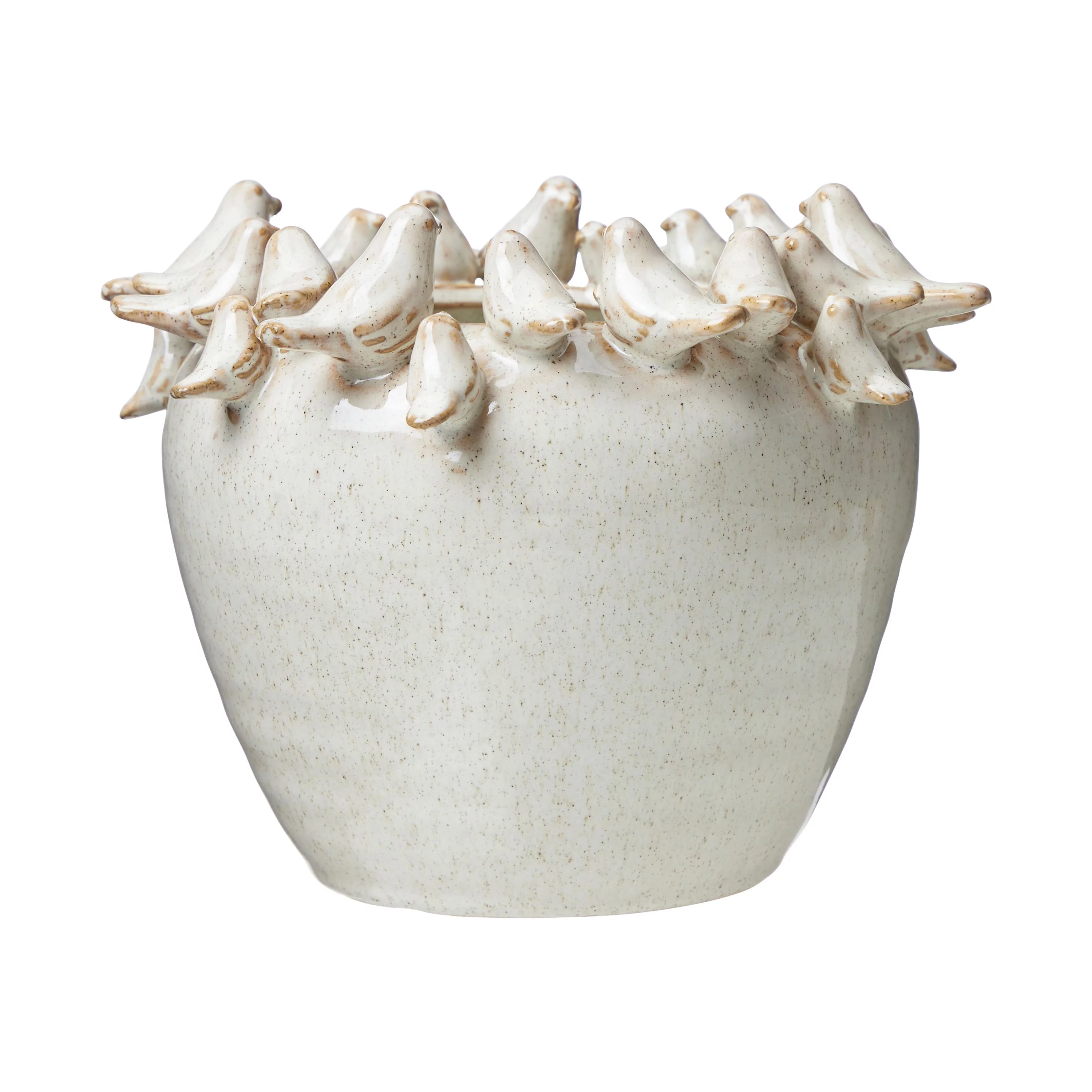 Глазуроване кашпо-ваза в цікавому дизайні з пташками прикрасить будь-який інтер'єр та стане гарним подарунком для рідних та друзів. Незвичний дизайн завжди не лишається непоміченим. Дуже добре пасує як до класичного та неокласичного інтеряєру або мінімалізму та Скандинавії.