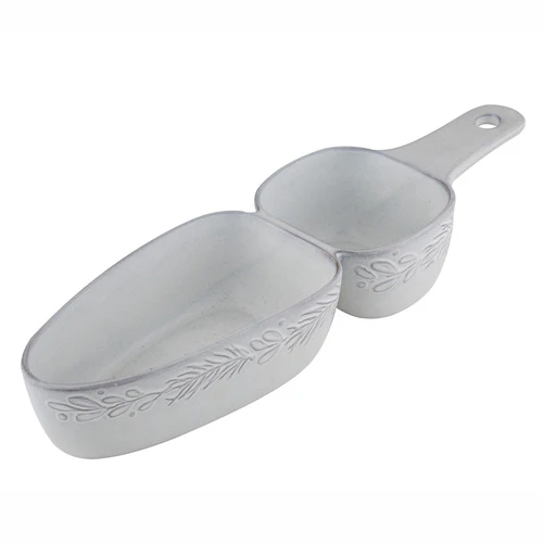 Функціональна форма з двома відділеннями дозволяє зручно подавати різні страви одночасно, а ручка забезпечує комфорт у використанні та подачі.