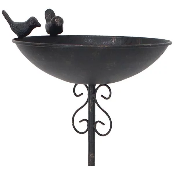 Ця елегантна годівничка на довгому кованому штекері — стильне та практичне доповнення до саду або квітника. Витончена декоративна конструкція з пташками на краю чаші додає затишку та класичного шарму будь-якому екстер'єру. Завдяки стійкій опорі її легко встановити просто в ґрунт.