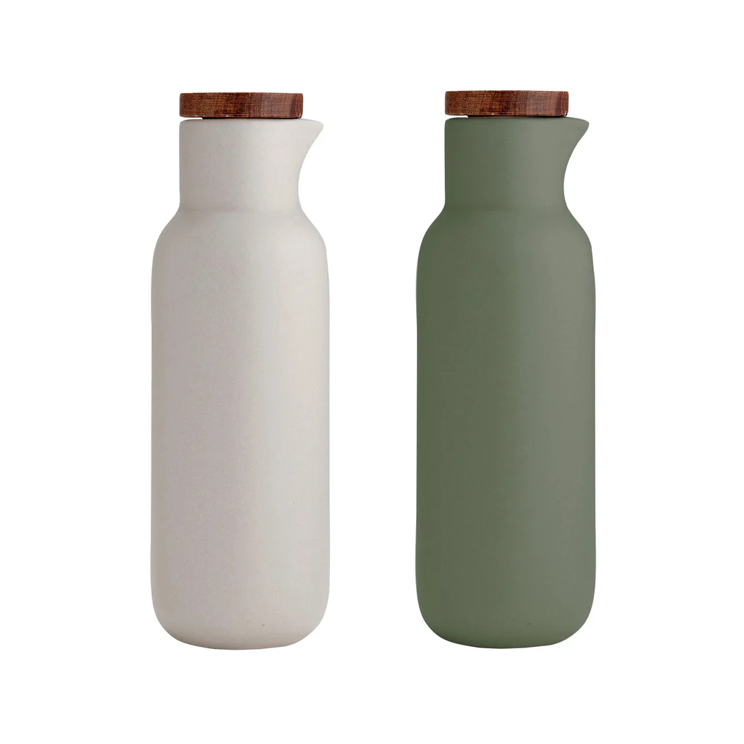 Стильний набір дозаторів для олії та оцту — це ідеальне поєднання мінімалістичного дизайну та практичності. Завдяки матовому покриттю та кришкам із натурального дерева (акація), набір гармонійно впишеться у будь-який сучасний інтер’єр кухні чи обідньої зони.