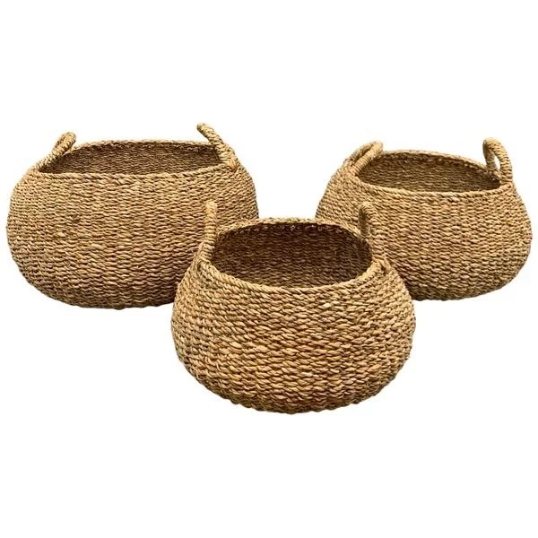 Практичний і стильний комплект плетених кошиків з натуральної морської трави — ідеальне рішення для зберігання речей з естетикою природних матеріалів. У комплект входить 3 кошики різних розмірів. Кошики мають зручні ручки для перенесення та ідеально підходять для зберігання пледів, іграшок, білизни або декоративного використання в інтер’єрі. Міцне плетіння та універсальний дизайн гармонійно впишуться як у сучасний, так і в еко-інтер’єр.