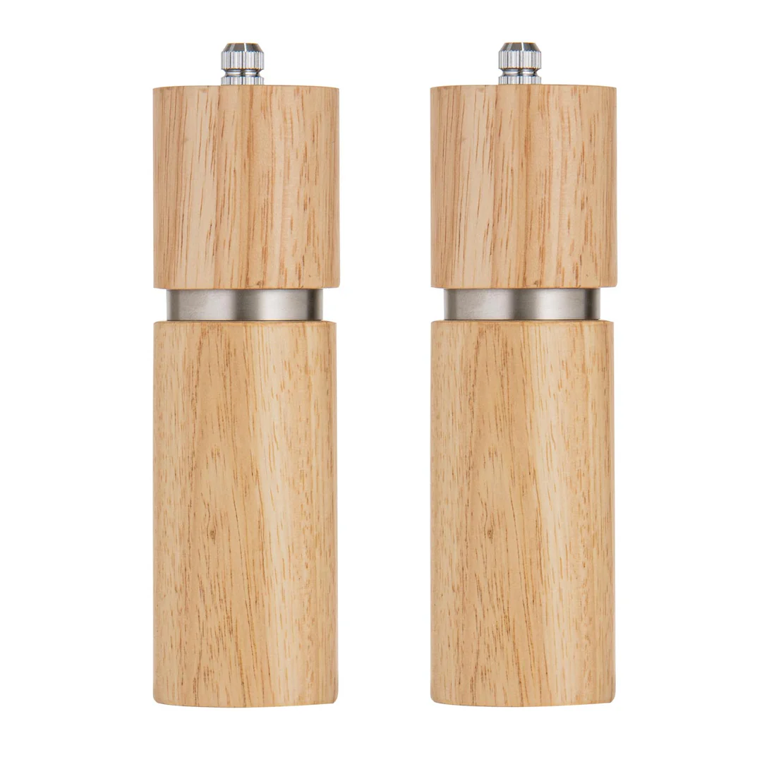 Класичний набір млинів для солі та перцю з натурального дерева — практичне та стильне рішення для щоденного використання. Завдяки природній текстурі деревини (rubberwood) кожен виріб має унікальний вигляд, що додає тепла та натуральності кухонному простору.
