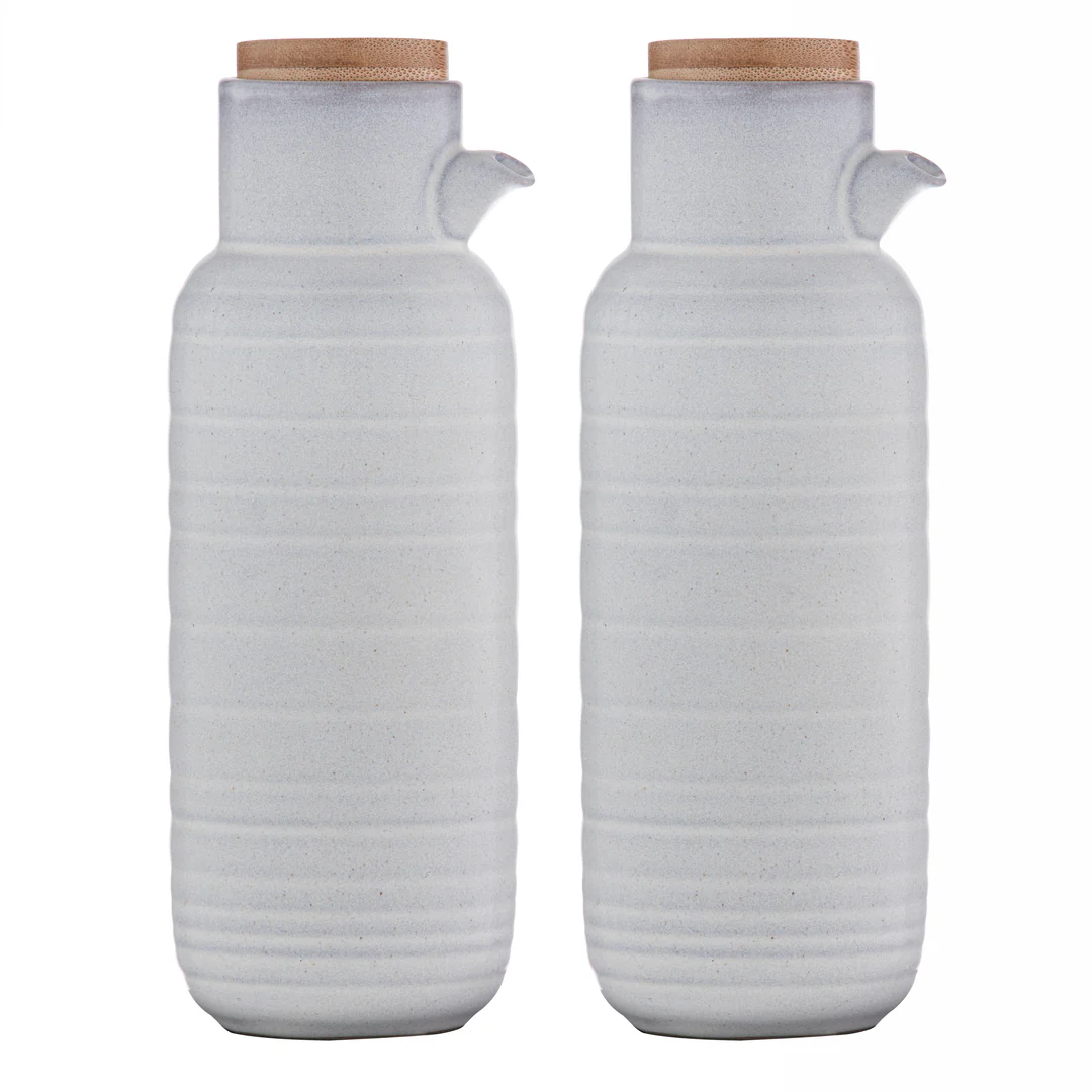 Елегантний набір пляшок для олії та оцту з колекції Croft — це поєднання функціональності та затишного дизайну. Завдяки м’якому нейтральному відтінку та фактурній поверхні з реактивною глазур’ю, виріб стане стильним акцентом на кухні або обідньому столі.