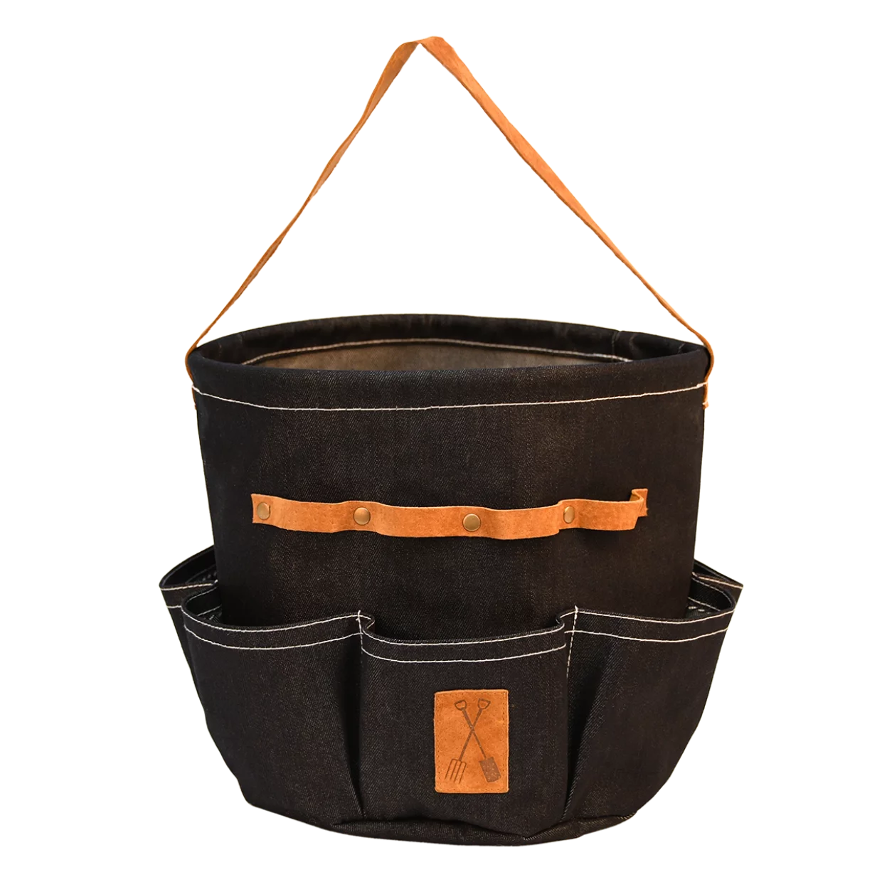 Ця джинсова сумка для садових інструментів має багато містких відділень для зберігання садових інструментів. Легко носити по саду завдяки міцній ручці.