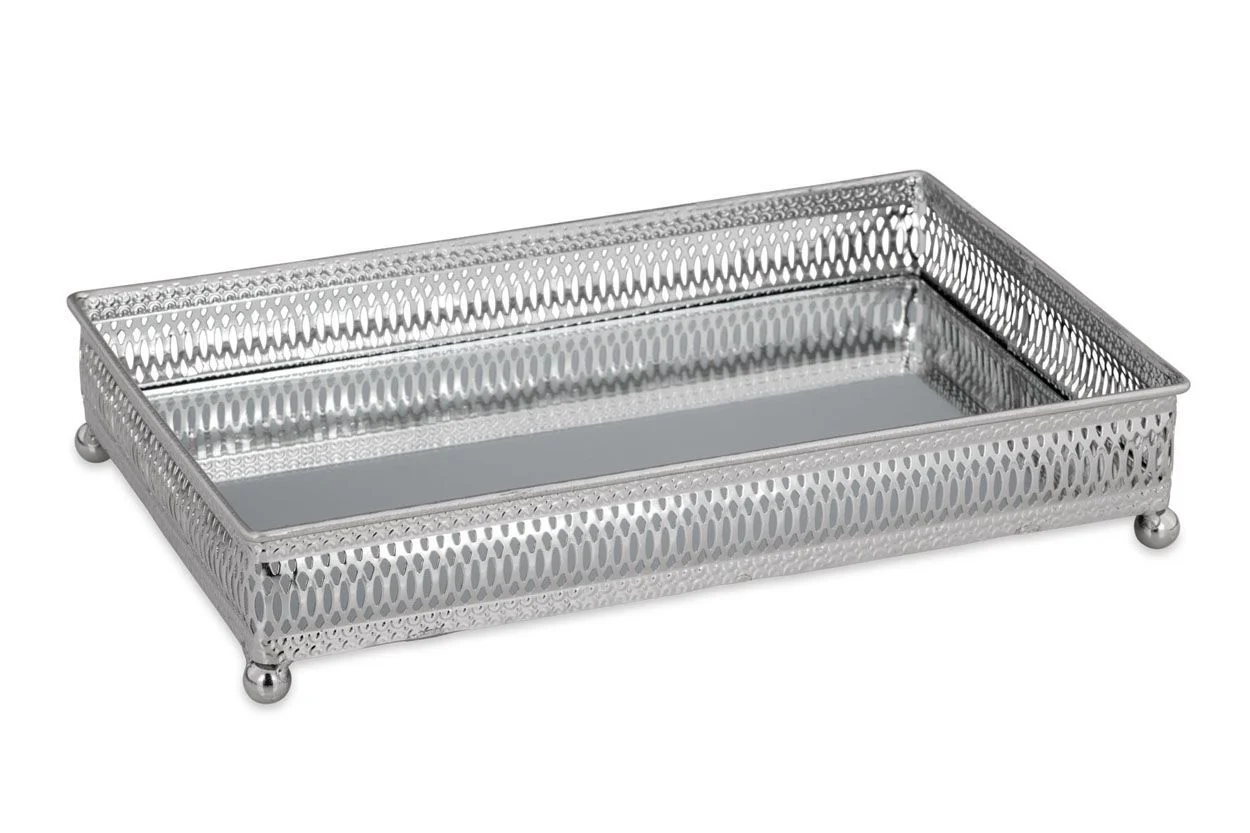 Вишуканий піднос з ефектними царговими (gallery) бортиками та сферичними ніжками стане стильним акцентом будь-якої сервіровки. Металевий каркас із нікельованим покриттям та дзеркальна поверхня підкреслюють розкіш і створюють преміум-настрій на столі або у декоративних композиціях.