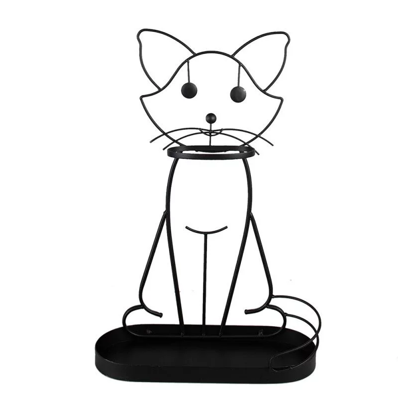 Оригінальна підставка для парасольок, виконана з міцного чорного заліза у формі кота, поєднує практичність і декоративність. Вона стане стильним елементом інтер’єру передпокою, додаючи простору грайливості та затишку.
