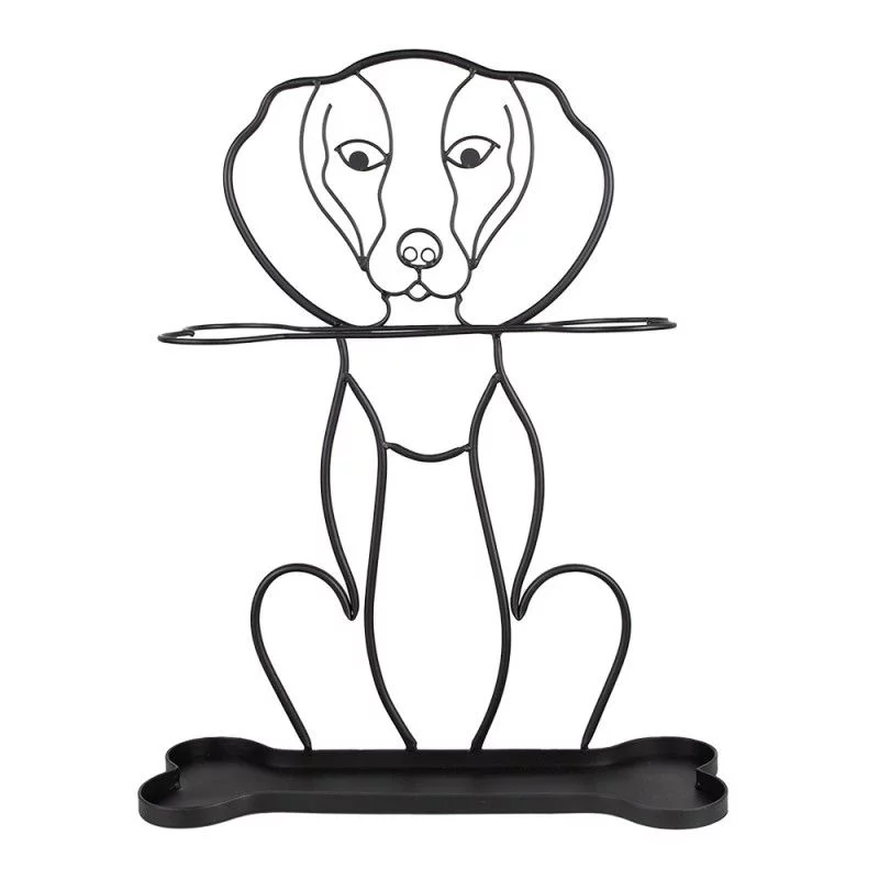 Стильна підставка для парасольок, виконана з чорного заліза у вигляді собаки, поєднує функціональність і декоративність. Її лаконічний дизайн з іронічною деталізацією додає інтер’єру оригінальності та створює затишну атмосферу у передпокої.