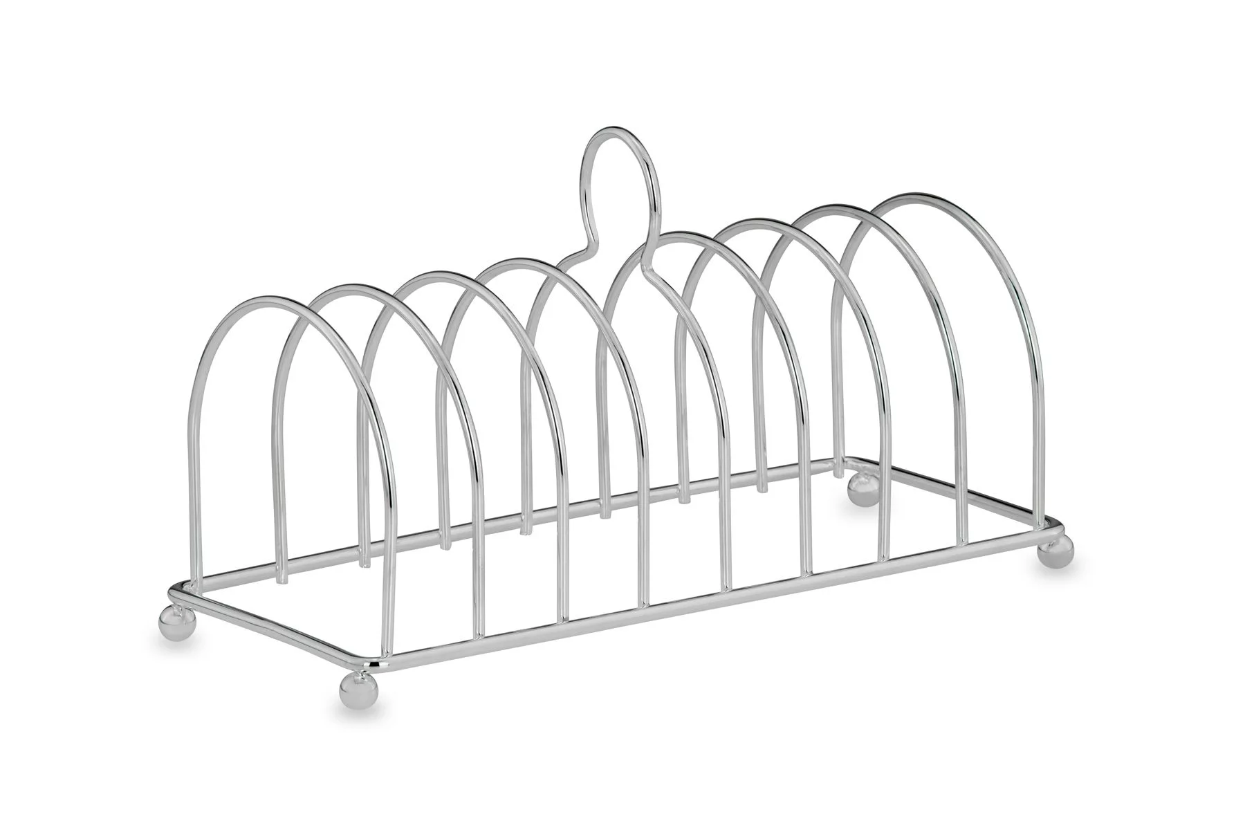 Елегантна металева підставка з посрібленим покриттям стане стильним акцентом на вашому столі. Вона має класичний дизайн з 6 відділеннями, що дозволяє зручно розміщувати тости або використовувати підставку як серветницю. Завдяки міцній конструкції та витонченому блиску срібла, виріб поєднує практичність і естетику, ідеально підходить як для повсякденного використання, так і для святкового сервірування.