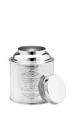 Стильна кругла банка для чаю з посрібленим покриттям — ідеальне рішення для зберігання листового або пакетованого чаю в красивому та захищеному форматі.