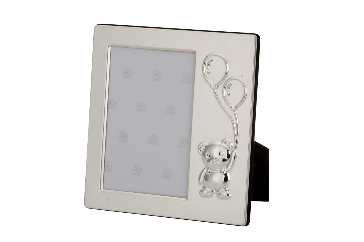 Мила фоторамка з об’ємним ведмедиком та повітряними кульками стане особливим акцентом у дитячій кімнаті та збереже найтепліші моменти дитинства. Ніжний матовий блиск срібного покриття додає виробу елегантності, а стильний дизайн пасує як до хлопчиків, так і до дівчаток.