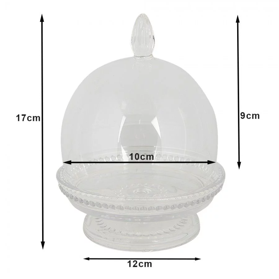 Вишуканий скляний клош із підставкою — стильний аксесуар для сервірування та декору. Ідеально підходить для подачі випічки, сиру, фруктів або використання як декоративний елемент для свічок, флораріумів чи улюблених аксесуарів.