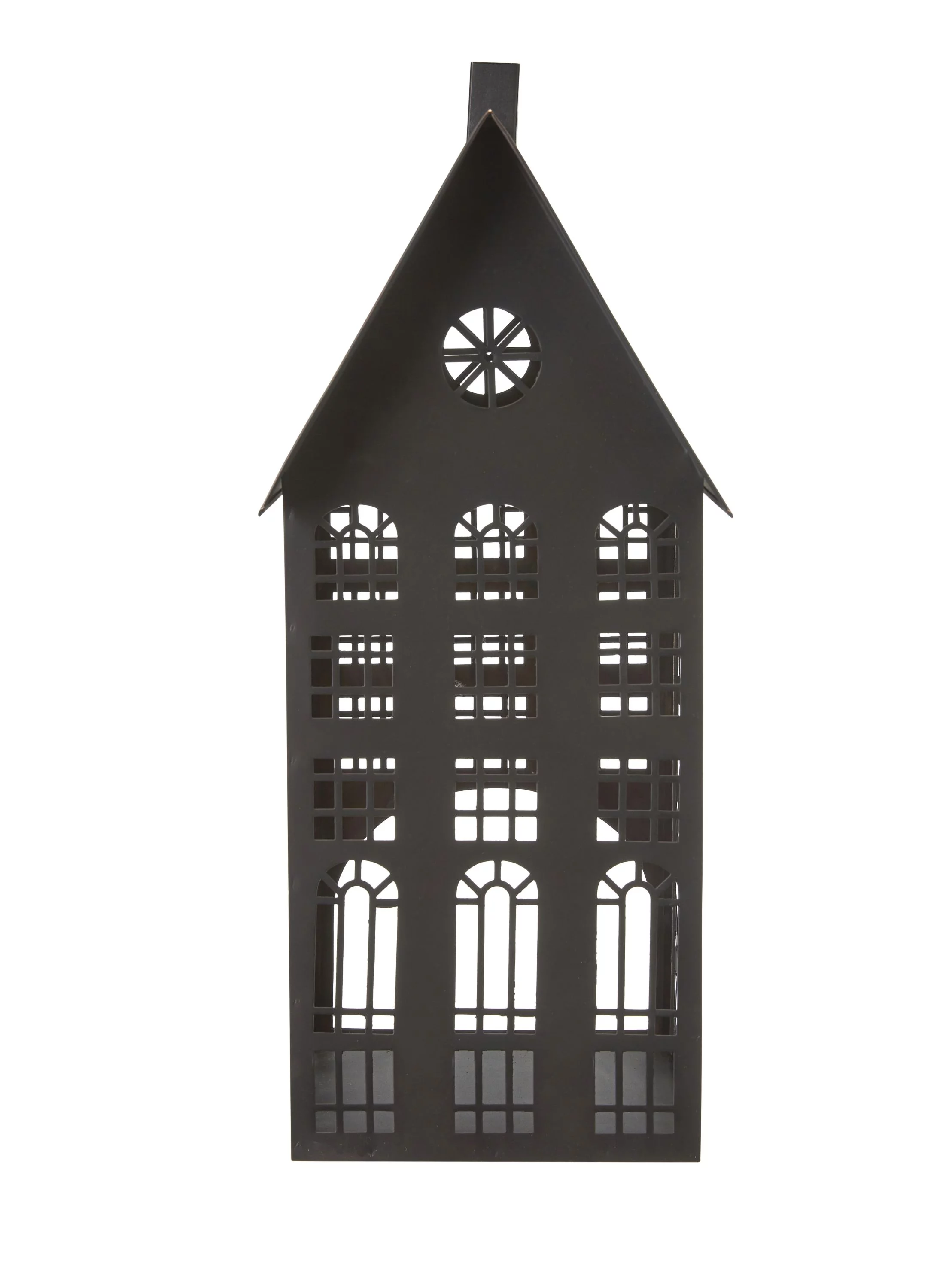 Оригінальний елемент декору, що додає затишку і тепла вашому інтер'єру. Виготовлений з високоякісного металу, він має форму  будиночка, через які красиво пробивається світло свічки. Цей стильний аксесуар ідеально підійде для створення атмосферного освітлення вдома, на терасі або в саду. Звичайно, можна використовувати не як свічник, а як стильне доповнення оселі.