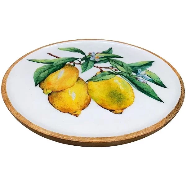Декоративна дерев’яна піднос-тарілка з колекції Les Fleurs — це стильний акцент для вашої кухні чи сервірування столу. Круглий піднос діаметром 30 см виготовлений із натурального дерева та прикрашений яскравим зображенням соковитих лимонів на гілці, що додає виробу середземноморського шарму.