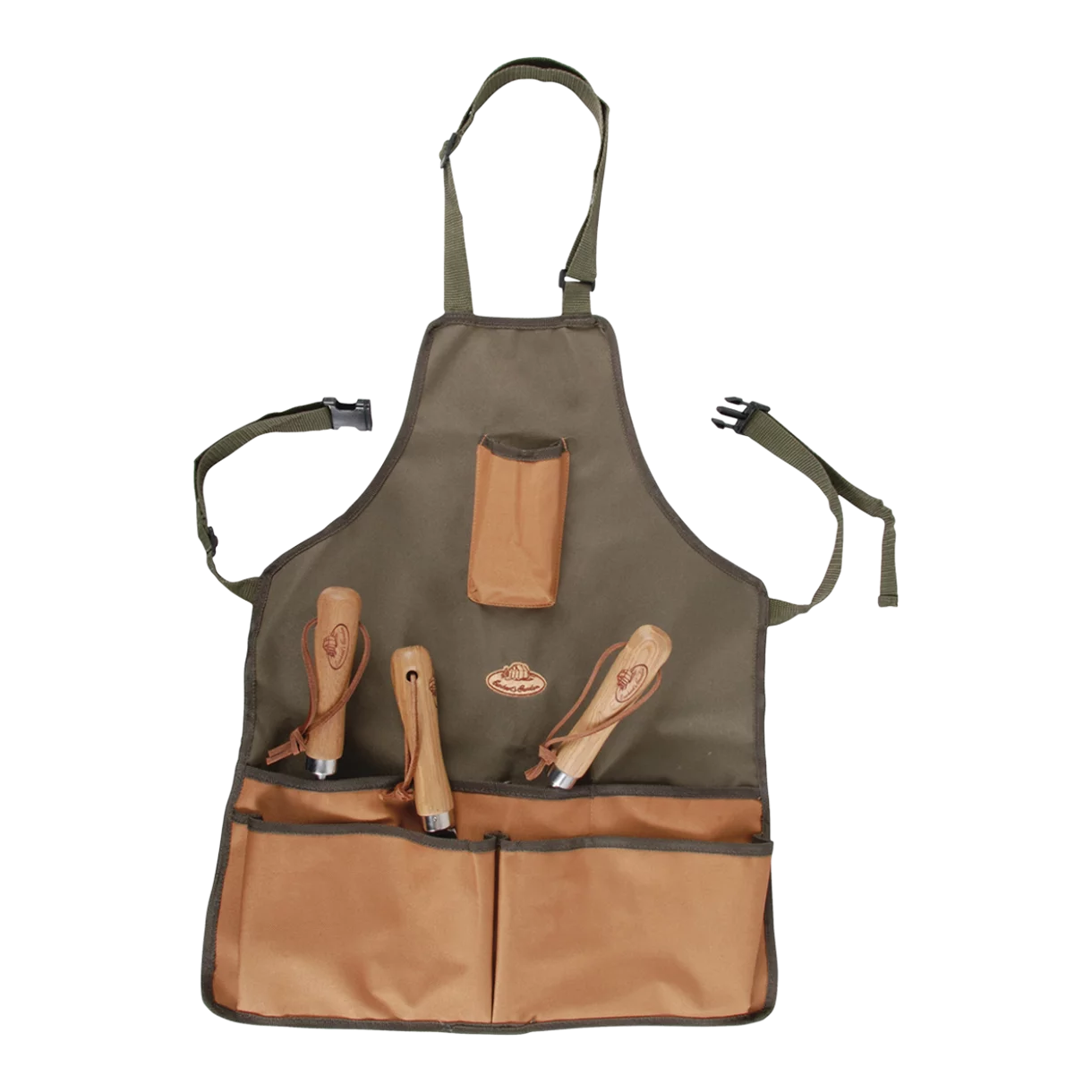 Цей надійний і міцний фартух з кількома просторими відділеннями є обов’язковим під час роботи в саду, кишені можна використовувати для різних садових інструментів. Шийний ремінь і ремінь регулюються.