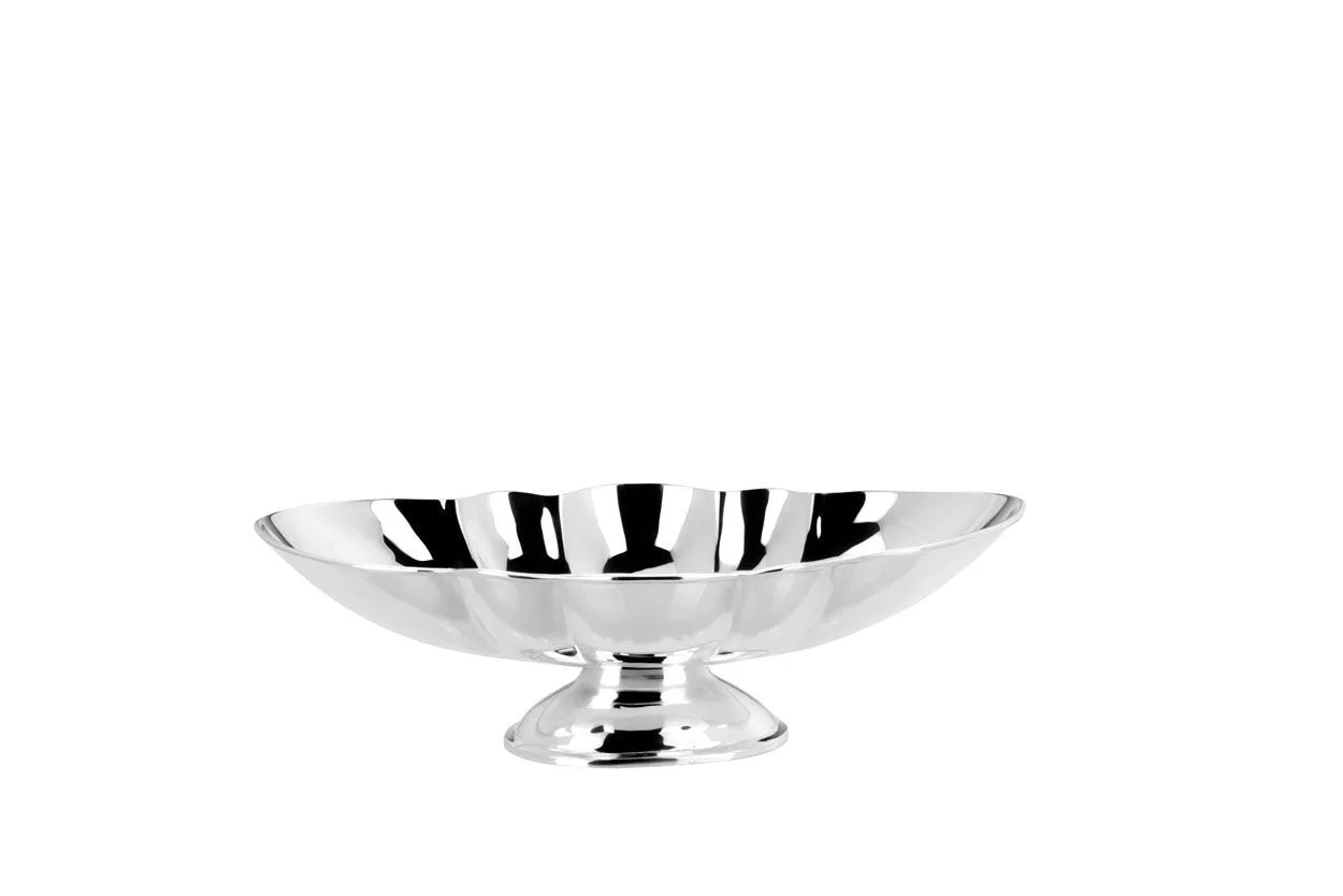 Вишукана посріблена фруктовниця на ніжці стане центральним елементом сервірування вашого столу. Дзеркальна полірована поверхня й овальна форма додають інтер’єру нотку преміальної розкоші.