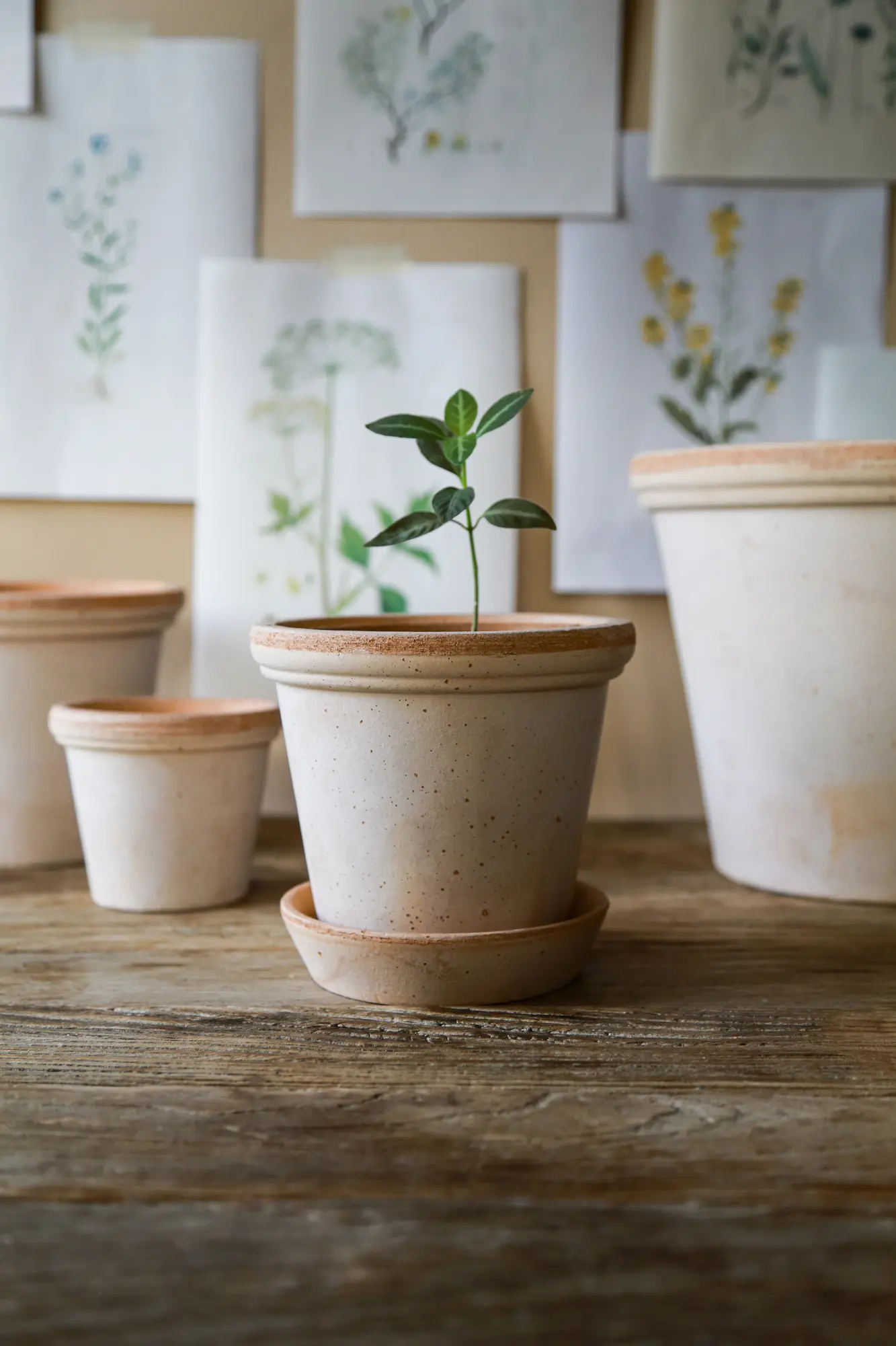 Необроблені глиняні горщики виготовлені з першокласної італійської глини, обпаленої при надзвичайно високих температурах — і нічого іншого. Ніяких хімікатів — лише чиста краса природи. Кожен із необроблених теракотових горщиків за своєю суттю натуральний, витончено старіє та з часом набуває красивої патини. Блюдця мають спеціальне покриття, яке робить їх водонепроникними та запобігає утворенню цвілі. Незалежно від того, чи використовуються вони як центральний елемент, для прикраси підвіконня або для розміщення великої рослини на дерев’яній підлозі, красиві горщики допоможуть додати нотку природи в кожен куточок дому.