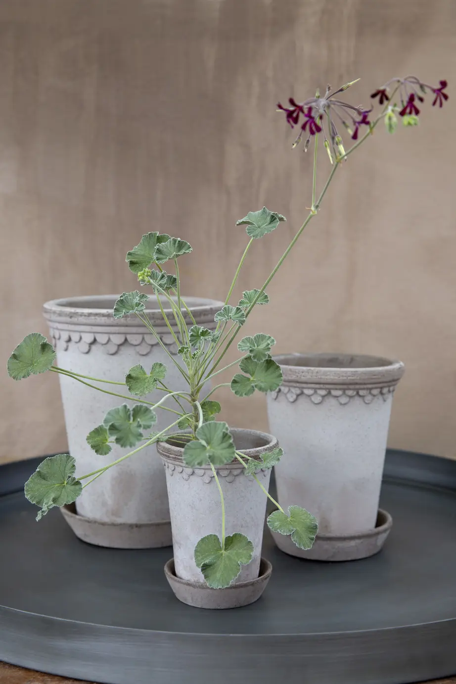 Необроблені глиняні горщики виготовлені з першокласної італійської глини, обпаленої при надзвичайно високих температурах — і нічого іншого. Ніяких хімікатів — лише чиста краса природи. Кожен із необроблених теракотових горщиків за своєю суттю натуральний, витончено старіє та з часом набуває красивої патини. Блюдця мають спеціальне покриття, яке робить їх водонепроникними та запобігає утворенню цвілі. Незалежно від того, чи використовуються вони як центральний елемент, для прикраси підвіконня або для розміщення великої рослини на дерев’яній підлозі, красиві горщики допоможуть додати нотку природи в кожен куточок дому.
