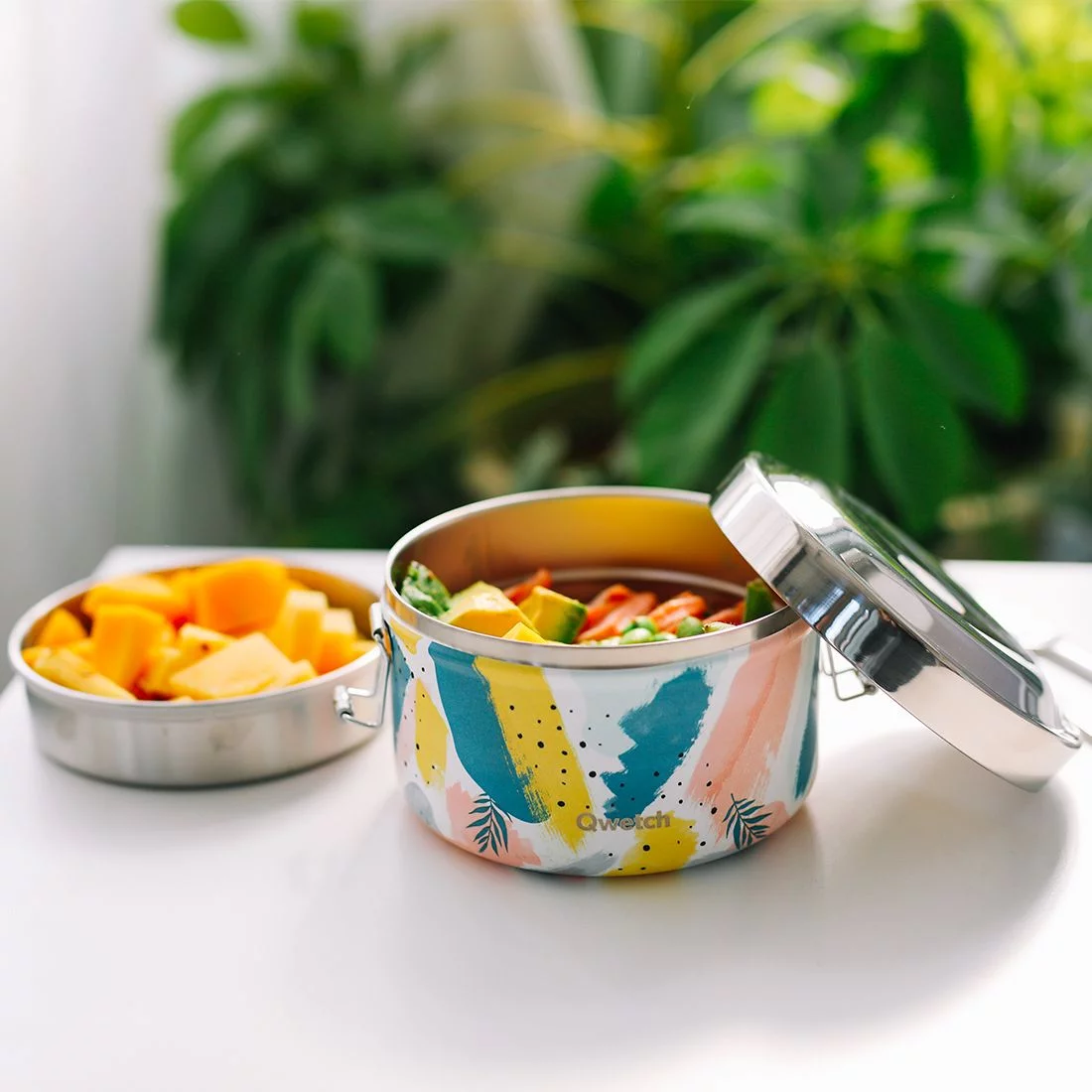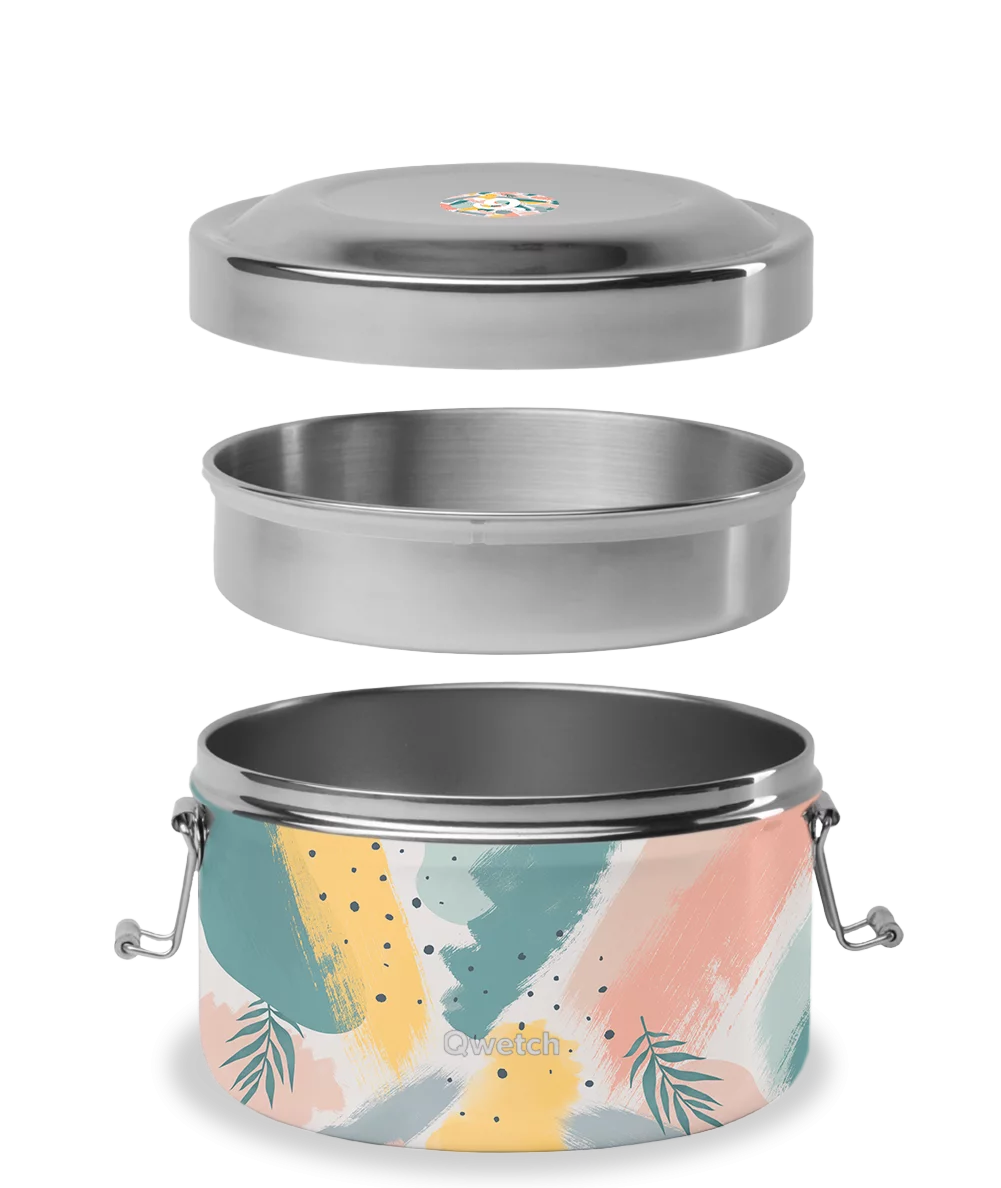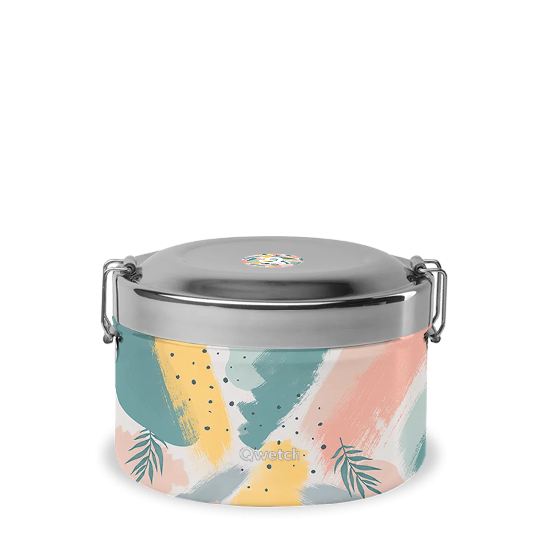 Ланчбокс (термос для їжі) обємом 850 мл., колір мультіколор (крупні різнокольорові мазки). Ланчбокс підходить для рідких та твердих страв. Герметичний, має надійну систему закривання з 2 затискачами (затискачі з регульованим тиском). Ідеально підходить для твердих страв.