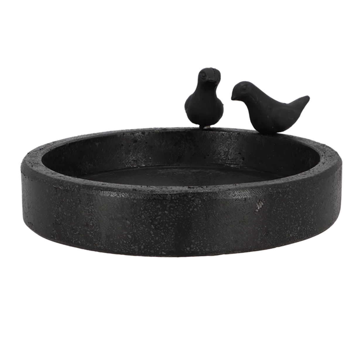 Птахи зможуть не лише освіжитися у спеку, а й попити води. Завдяки своїй формі та вазі купальня стійко стоїть навіть на вітрі й може використовуватись також як годівничка для корму. Декоративні фігурки птахів на краю додають їй шарму та природності.