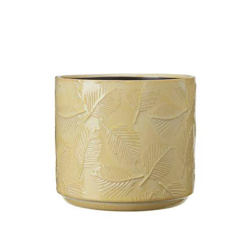 Це керамічне кашпо у жовтому кольорі з витонченим візерунком листя стане яскравим акцентом вашого інтер’єру. Поєднання теплого відтінку й оригінального орнаменту створює стильний та затишний образ, що доповнить будь-який простір.