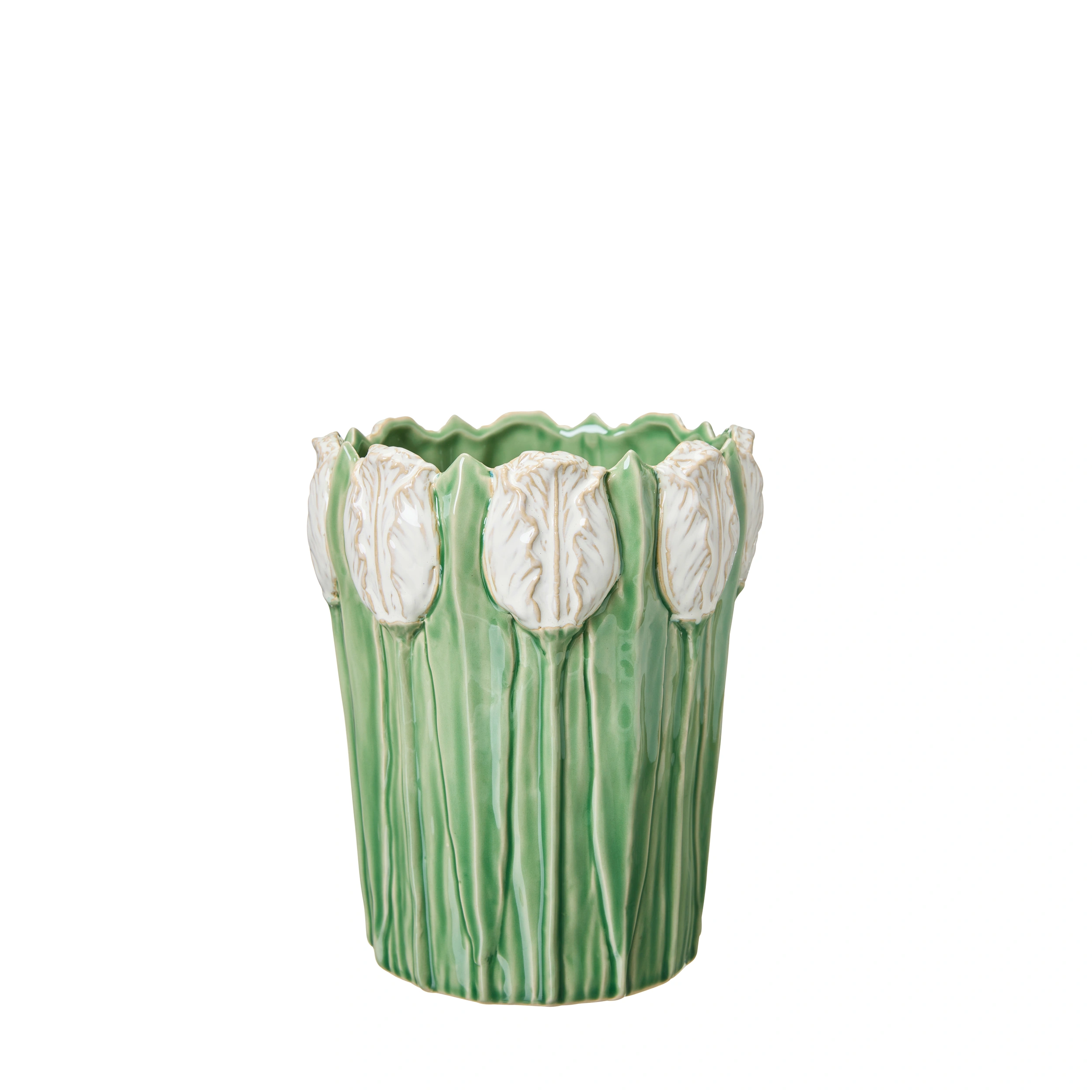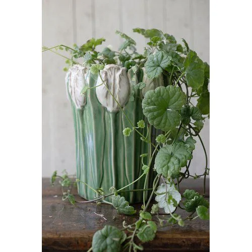 Кашпо KATJA — виразний декоративний акцент із природним характером. Вертикальна рельєфна текстура у поєднанні з поєднанням зеленого та off-white відтінків створює ефект ручної кераміки та додає виробу художньої глибини.