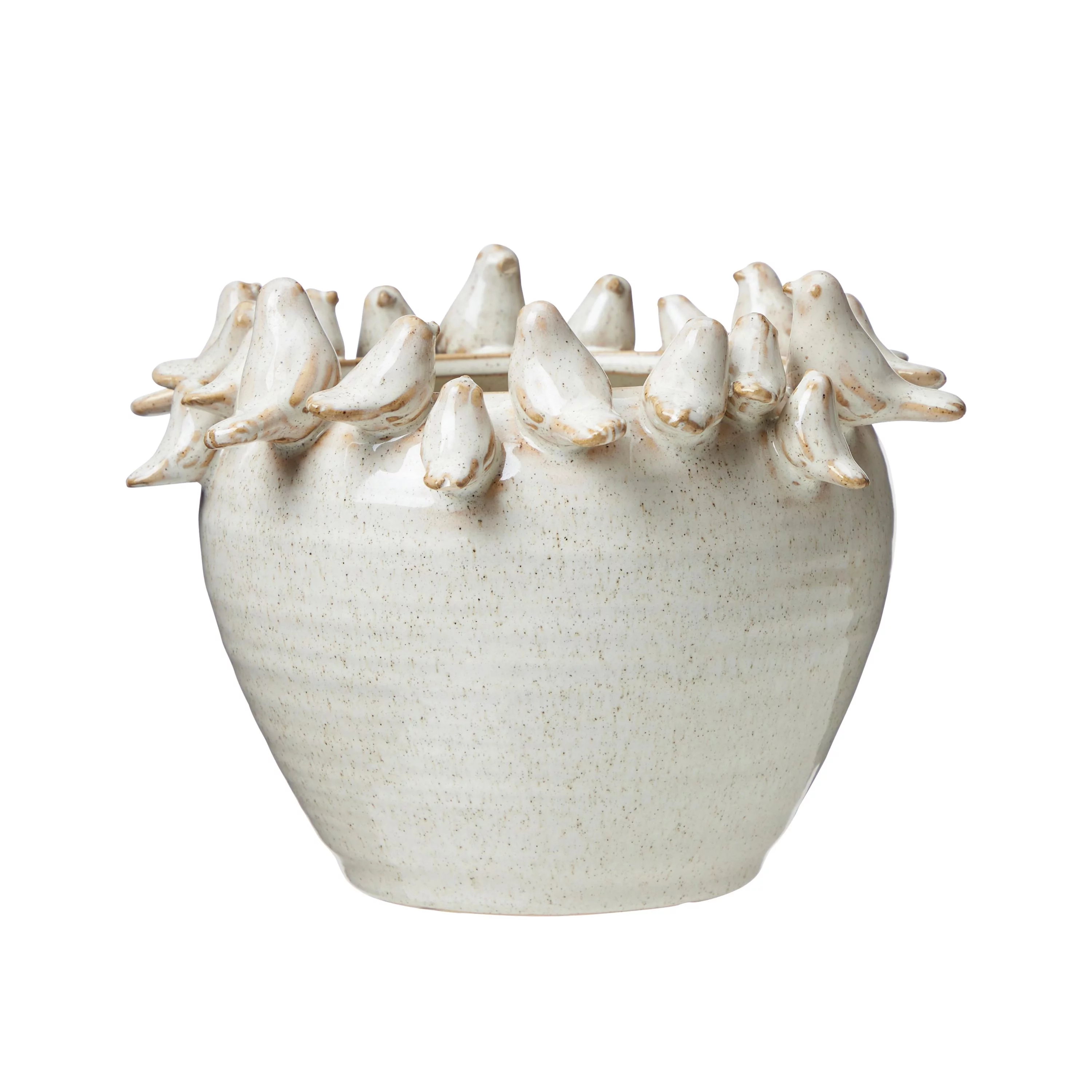 Глазуроване кашпо-ваза в цікавому дизайні з пташками прикрасить будь-який інтер'єр та стане гарним подарунком для рідних та друзів. Незвичний дизайн завжди не лишається непоміченим. Дуже добре пасує як до класичного та неокласичного інтеряєру або мінімалізму та Скандинавії.