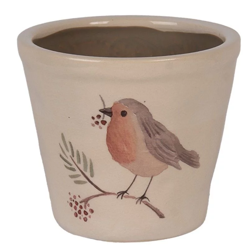 Ніжне керамічне кашпо в бежевому кольорі з чарівним пташиним мотивом у стилі rustic стане чудовим акцентом у вашому інтер’єрі. Малюнок пташки на гілочці додає виробу природності та затишку, створюючи теплу атмосферу у будь-якому куточку дому.