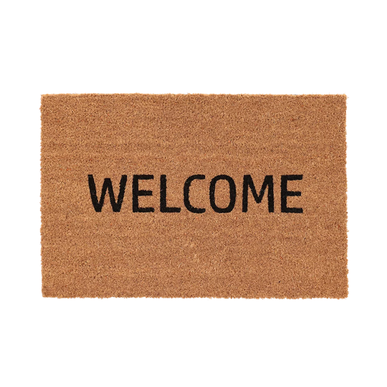 Цей килимок з кокосового волокна змусить кожного почуватися бажаним! Цей килимок одночасно декоративний і функціональний. Міцні волокна кокосового волокна килимка добре очищають підошви взуття та черевиків. ПВХ-підкладка килимка допомагає тримати його на місці.