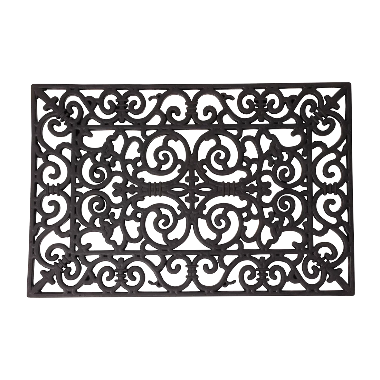 Цей прямокутний гумовий килимок чудовий як для використання в приміщенні, так і на вулиці. Цей гумовий килимок має класичний вікторіанський дизайн із витонченими завитками. Перевага повністю гумового килимка полягає в тому, що він легко очищається шляхом промивання під краном або шлангом.