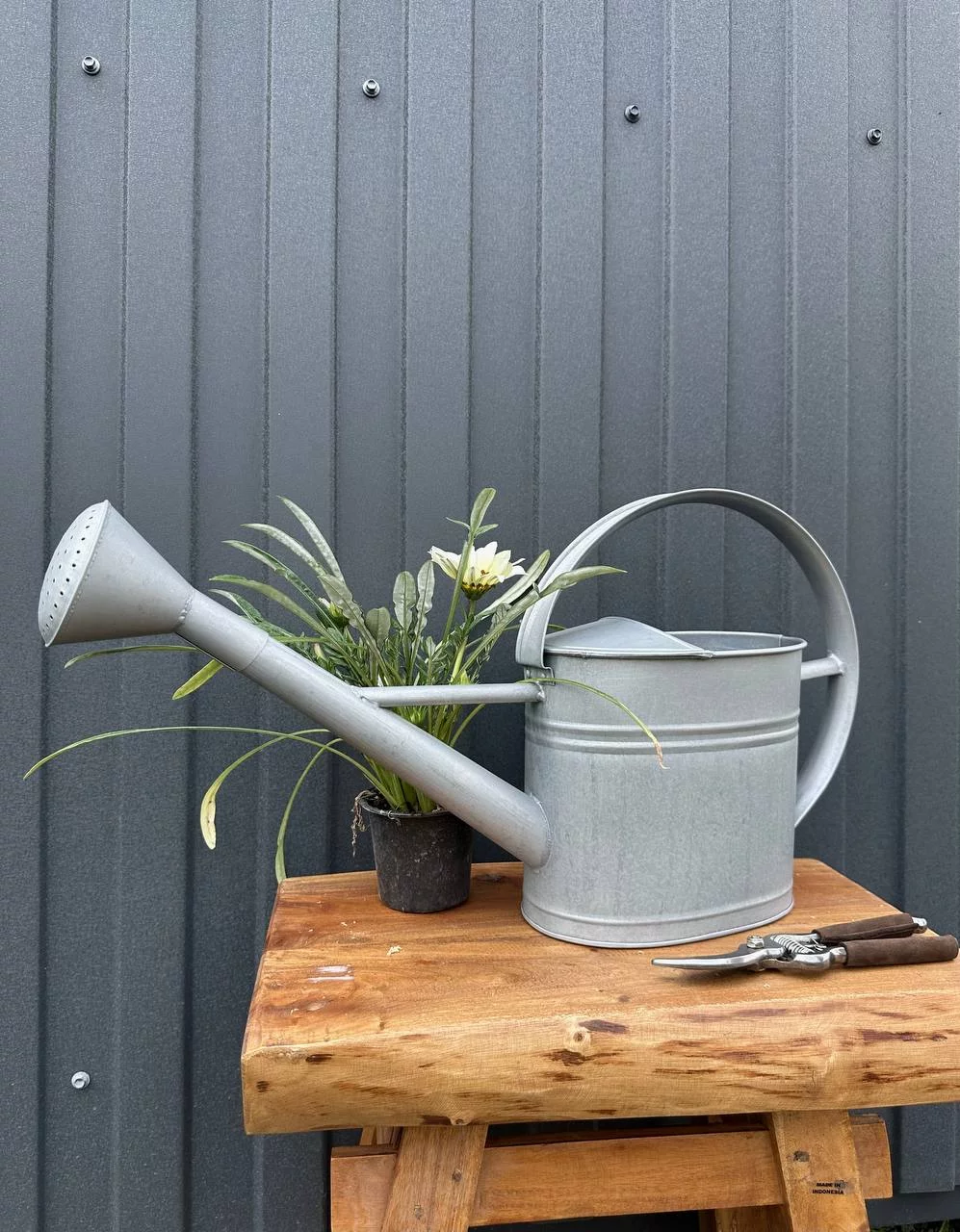 Лійка для вуличних рослин, об'ємом 3 літри, виготовлена з оцинкованого металу. Має носик, що знімається, також можна змінювати напрямок поливу рослин.