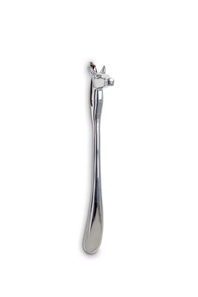 Елегантна та зручна ложка для взуття з декоративною ручкою у вигляді голови коня — стильний аксесуар для щоденного використання. Завдяки довжині 52 см, вона дозволяє легко взувати взуття без зайвих зусиль, не нахиляючись. Виготовлена з міцного алюмінію, має гладку поверхню та надійний дизайн.