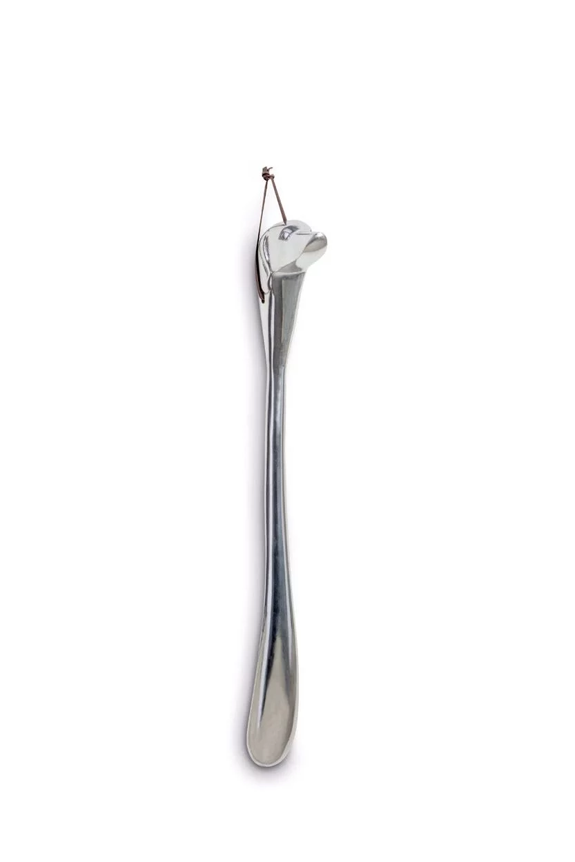 Стильна та практична ложка для взуття з оригінальною ручкою у вигляді голови собаки. Завдяки довжині 52 см, аксесуар дозволяє легко взувати взуття без зайвих зусиль і нахилів, що особливо зручно для щоденного використання. Виготовлена з міцного алюмінію, вона має ергономічну форму та привабливий дизайн.