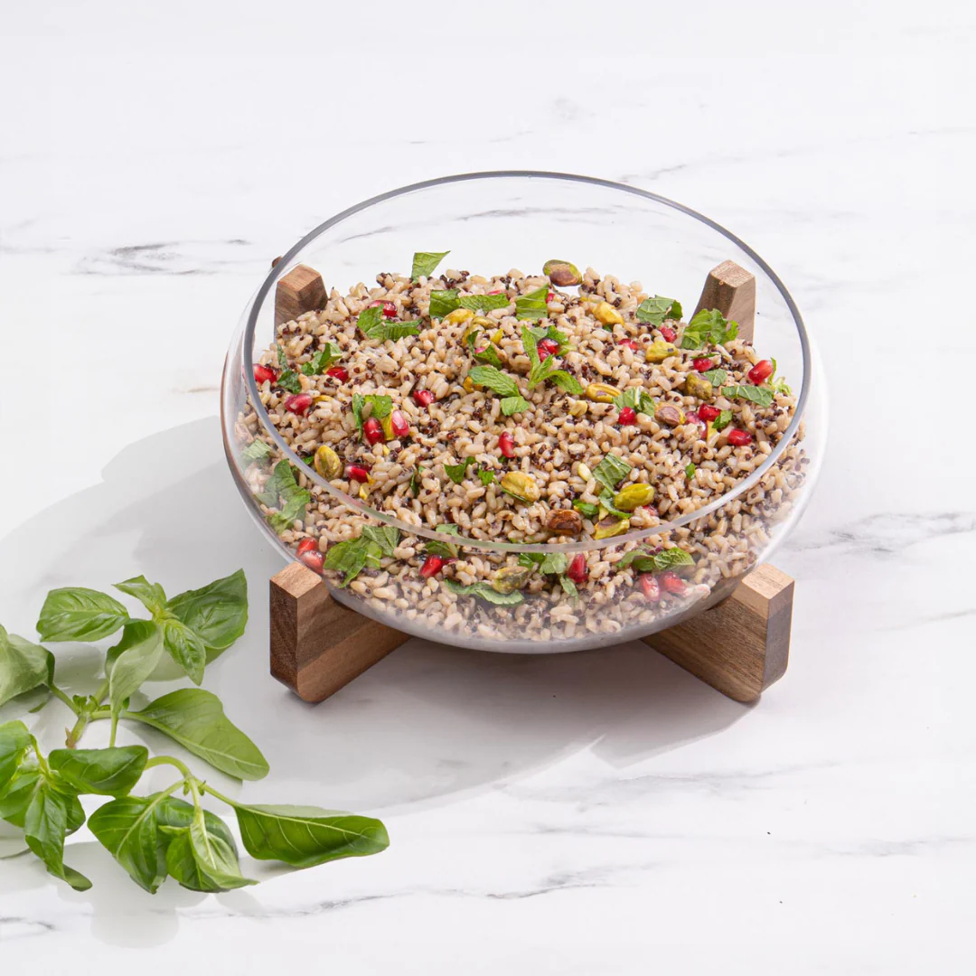 Елегантна салатниця Gather — це поєднання легкості скла та натуральної фактури дерева. Прозора чаша красиво підкреслює подачу страв, а підставка з акації додає тепла та стильного акценту до сервірування.