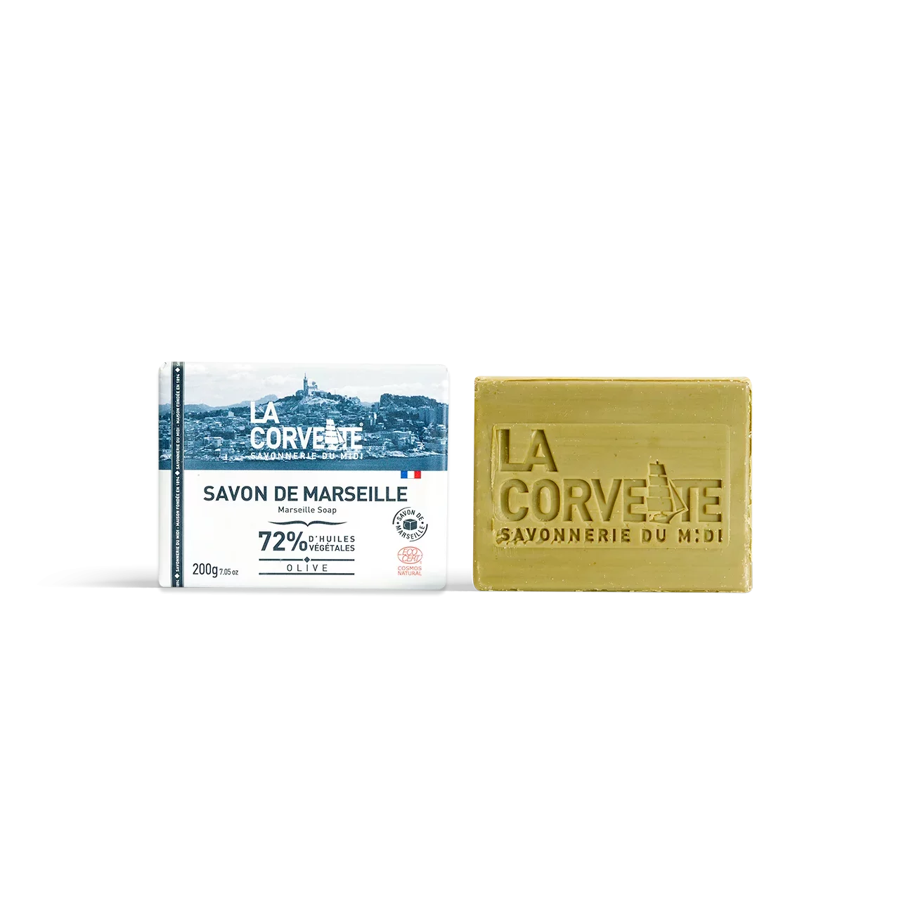 Марсельське мило La Corvette Olive — традиційний продукт з гіпоалергенною формулою. 100% натурального походження на основі виключно рослинних олій, без пальмової олії. Це екологічний продукт, без барвників, парфумів та консервантів.