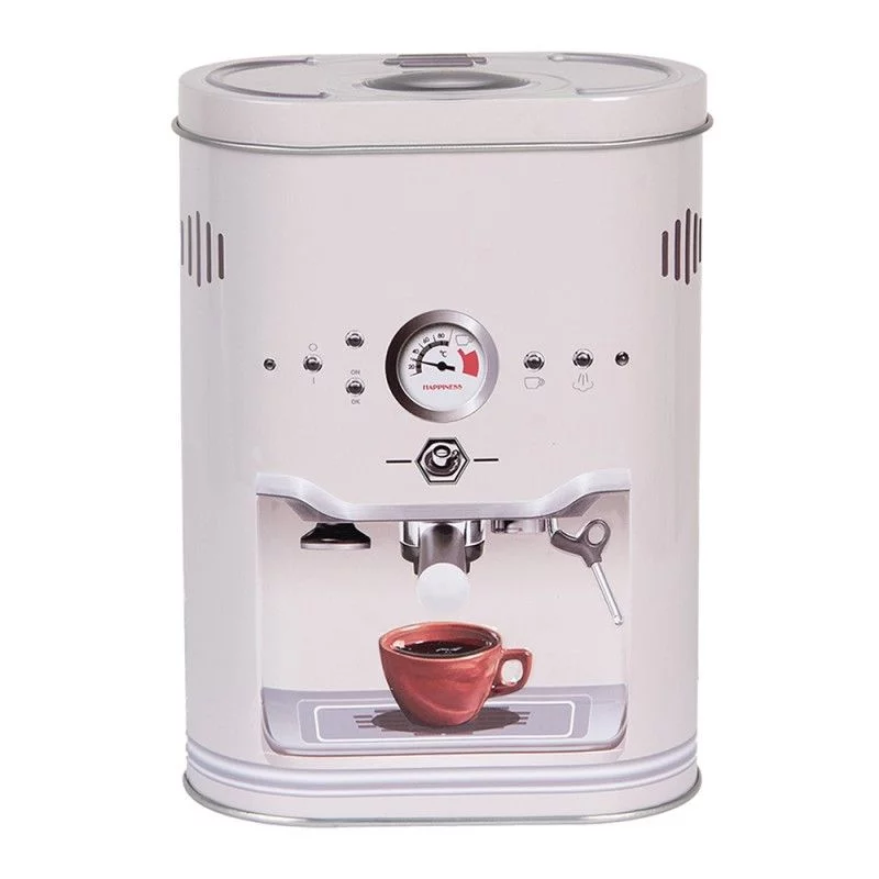 Стильна металева банка в сірому кольорі з оригінальним дизайном у вигляді кавомашини стане не лише практичним, а й декоративним елементом вашої кухні. Вона ідеально підходить для зберігання кавових зерен, меленої кави, капсул або подушечок, зберігаючи їх аромат і свіжість.
