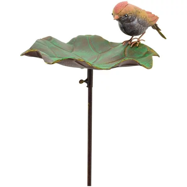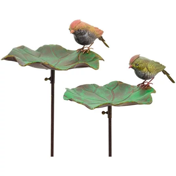 Декоративні металеві годівнички для птахів у формі листя з кольоровими фігурками пташок — ідеальне доповнення до вашого саду. Вироби представлені у двох різновидах, чудово поєднуються із природним ландшафтом та додають акцентів у декорі. Завдяки міцній ніжці конструкцію легко закріпити в землі.