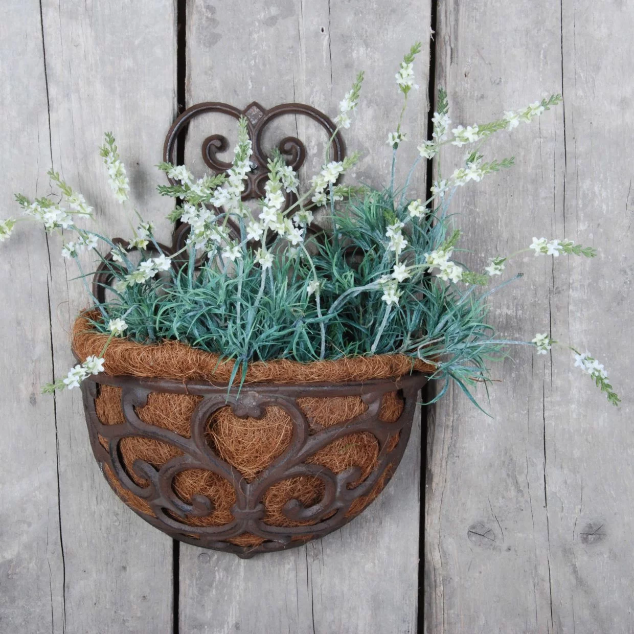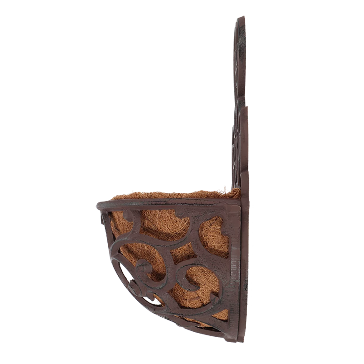 Елегантне настінне кашпо стане чудовою прикрасою для вашого саду, балкона або інтер'єру. Виготовлений з міцного металу з витонченими кованими візерунками, він має антикварний ефект, що додає йому вишуканого шарму. У комплекті йде натуральний кокосовий вкладиш, який забезпечує хорошу вентиляцію коріння рослин і збереження вологи.
