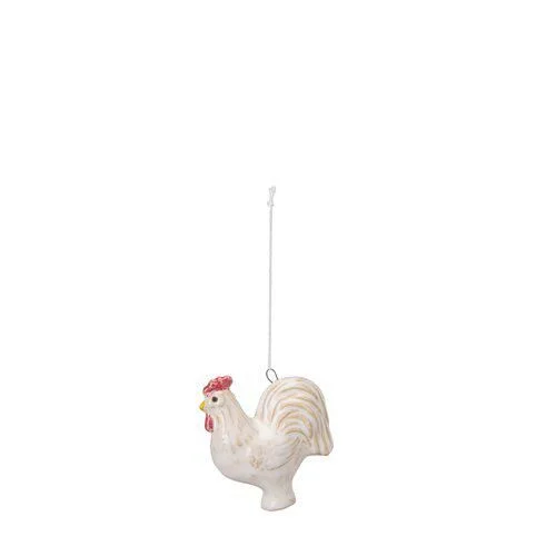 Чарівний комплект керамічних підвісок — це ніжний декоративний акцент для дому. У набір входять дві фігурки: курочка та півник у білому кольорі з делікатними кольоровими деталями.