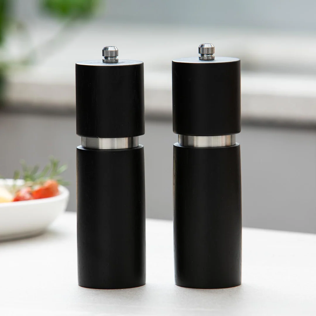 Класичний набір млинів для солі та перцю з натурального дерева — практичне та стильне рішення для щоденного використання. Завдяки природній текстурі деревини (rubberwood) кожен виріб має унікальний вигляд, що додає тепла та натуральності кухонному простору.