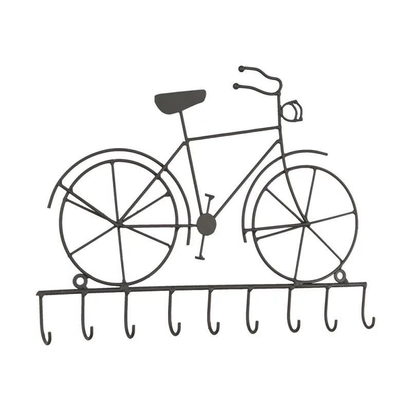 Оригінальна настінна ключниця у вигляді велосипеда стане практичним і стильним аксесуаром для вашого дому. Виготовлена з міцного чорного металу, вона не лише допоможе впорядкувати ключі чи дрібні речі, але й додасть інтер’єру креативного акценту.