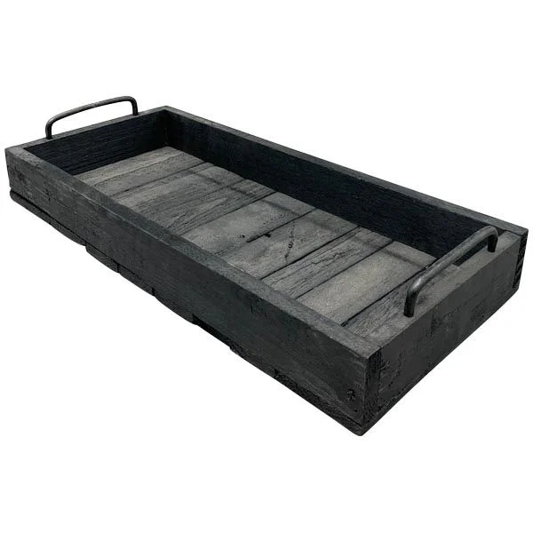 Стильний прямокутний піднос з колекції Bloom – ідеальне поєднання натурального дерева та міцного металу. Виконаний у благородному чорному кольорі, піднос має зручні металеві ручки для безпечного перенесення. Завдяки своїм розмірам 45×20,5×8,5 см, він чудово підходить для сервірування сніданку, подачі напоїв або використання як декоративного елементу в інтер'єрі.
