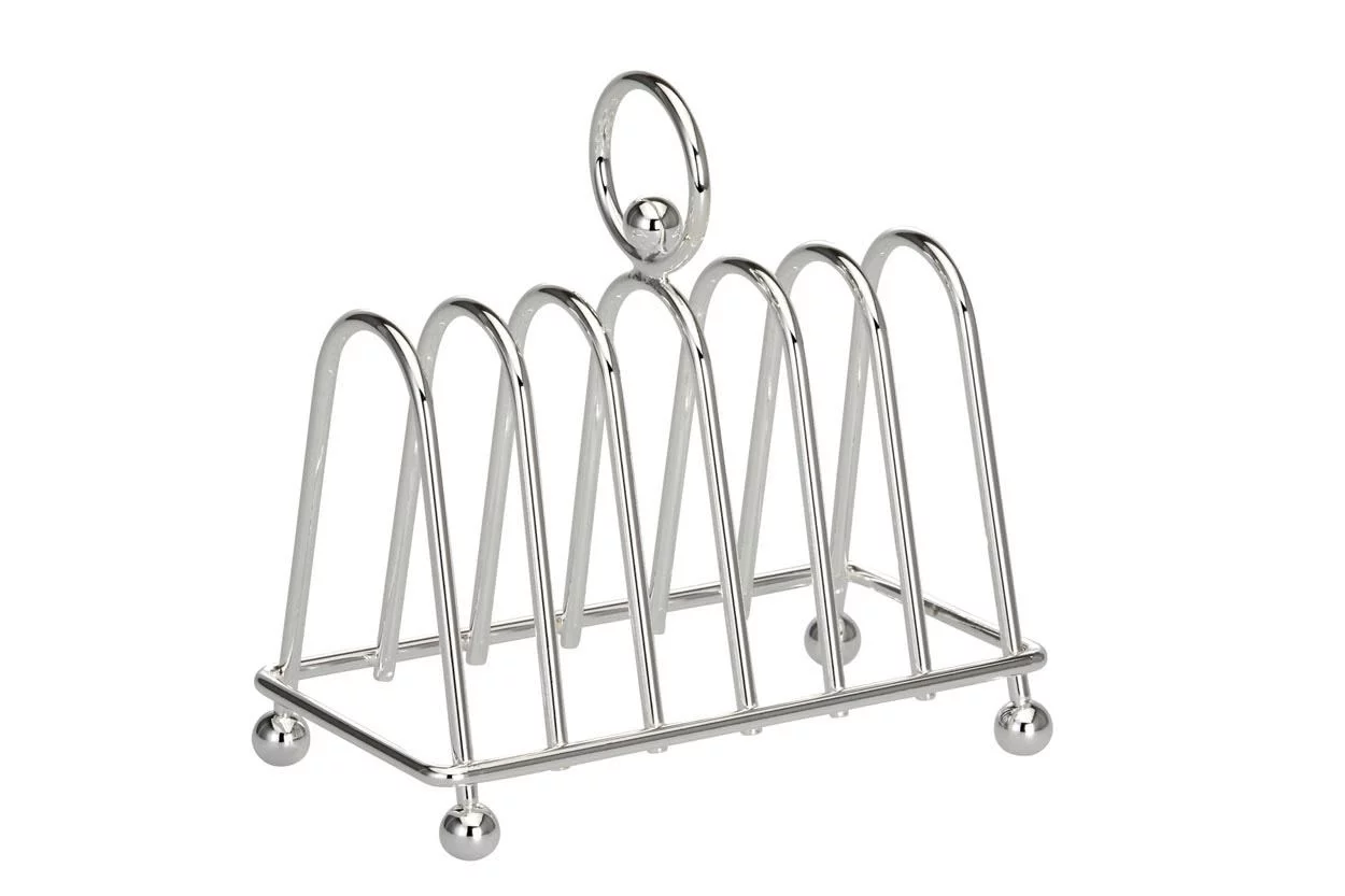 Елегантна підставка з посрібленим покриттям, розрахована на 6 тостів. Завдяки стильному дизайну вона стане справжньою прикрасою вашого столу. Багатофункціональний аксесуар: його можна використовувати як класичну підставку для тостів під час сніданку або як зручну серветницю для паперових чи тканинних серветок.