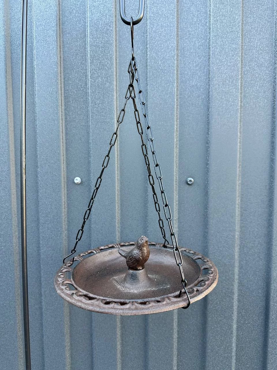 Підвісна металева годівничка для пташок, яку можна розмістити на дереві або ж на террасі. Також може використовуватись як купальня. Має подарункову упаковку.