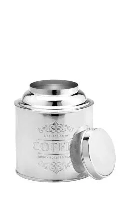 Кругла банка для кави з посрібленою поверхнею — аксесуар, що додасть сервіруванню нотки класичної розкоші.